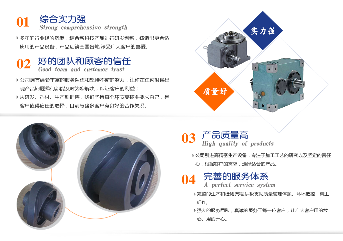 諸城市萬春機(jī)械有限公司是一家專業(yè)從事研發(fā),生產(chǎn)、銷售凸輪間歇傳動(dòng)機(jī)構(gòu)的企業(yè),公司現(xiàn)擁有高精度五軸加工中心,從而保證了凸輪的鏡面磨削,分度轉(zhuǎn)塔精度高。技術(shù)力量雄厚,檢測手段完善。